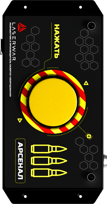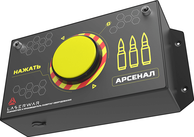 С каждым нажатием на жёлтую кнопку «Арсенал» выдаёт ИК-импульсы. Все лазертаг-винтовки, попадающие в зону действия инфракрасных импульсов, получают новый запас патронов. После перезарядки макеты сразу готовы к игре. Несколько нажатий, и бойцы снова в строю.