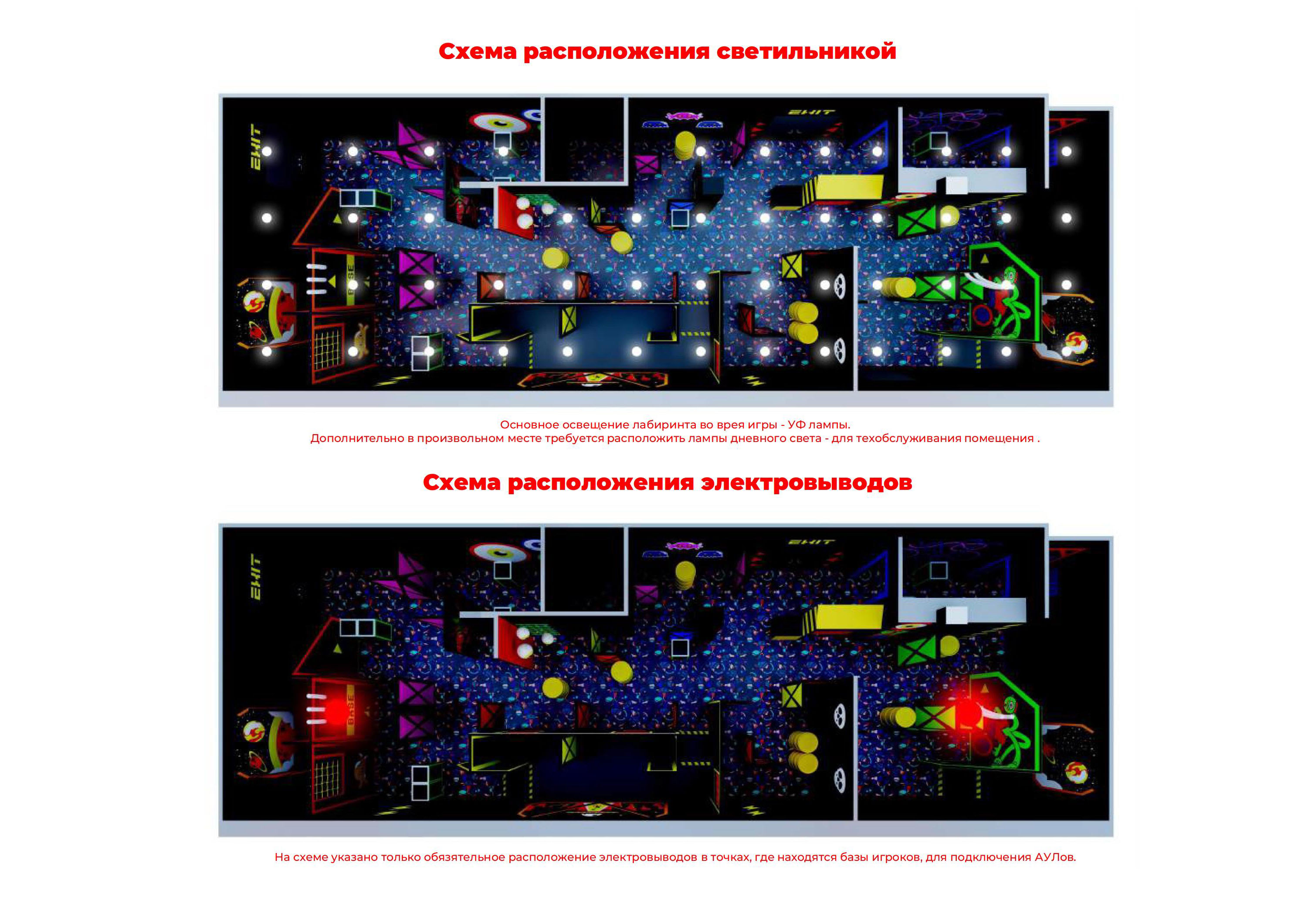 - План размещения розеток, электровыводов, девайсов для проведения лазертаг игр;