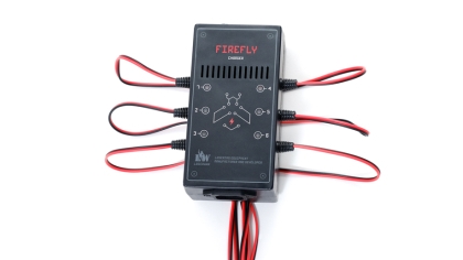 Устройство предназначено для фирменных Li+ сборок 7,4 V с платой защиты, позволяет подзаряжать одновременно 6 игровых комплектов или повязок (повязки Smart RGB «Пауком» не заряжаются). Мы долго тестировали новое устройство и подобрали оптимальную длину провода для зарядки — она составляет 1,5 метра, а само зарядное устройство подключается к розетке 220 V через классический компьютерный штекер питания, применяемый для домашних ПК и мониторов. Штекер также входит в комплектацию.