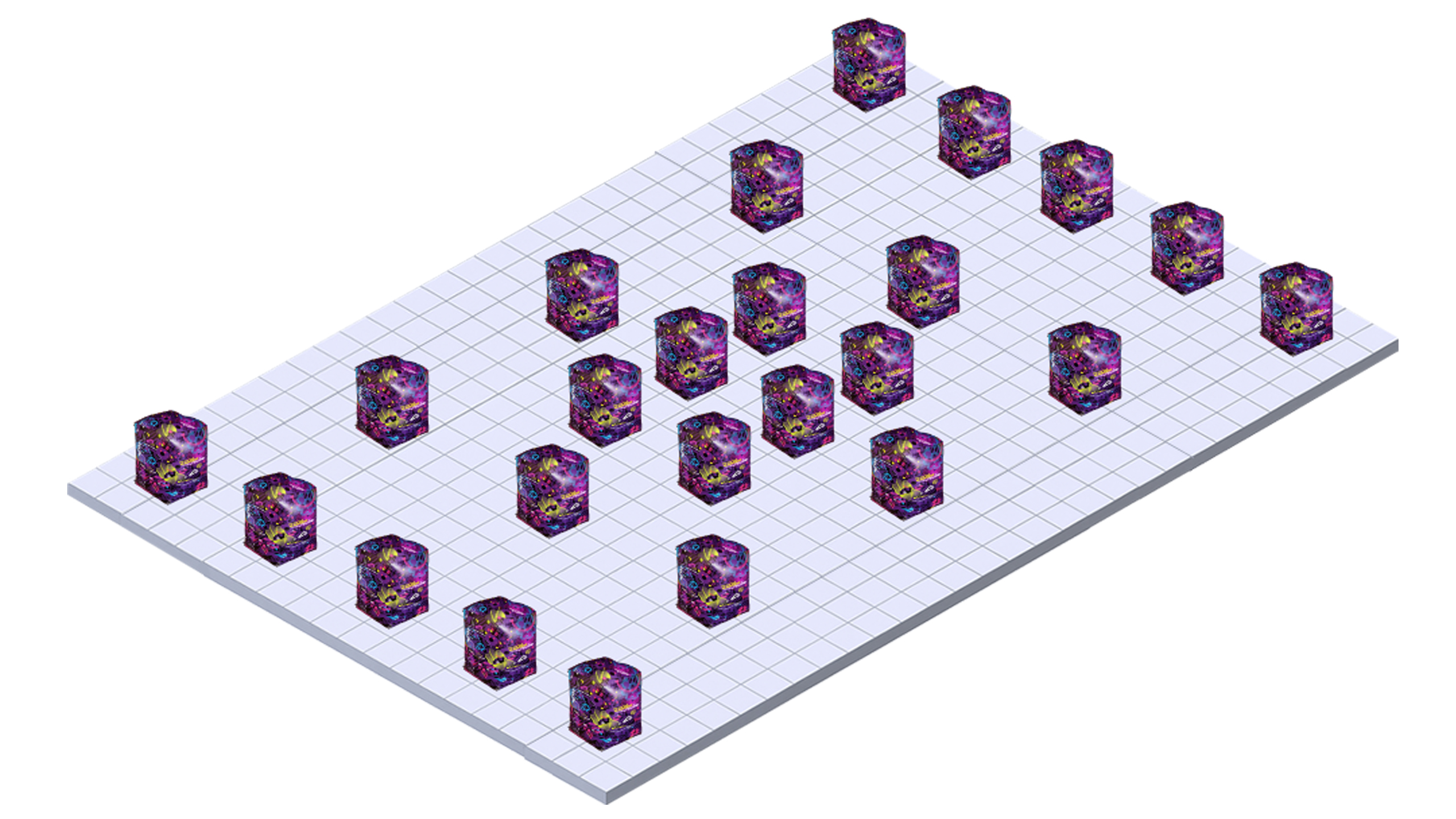 Полноразмерное профессиональное поле из 24 укрытий для турниров. Конфигурация поддерживает популярные соревновательные форматы 5×5 и 9×9 и даёт игрокам полноценное пространство для тактики, перемещений и командной работы.